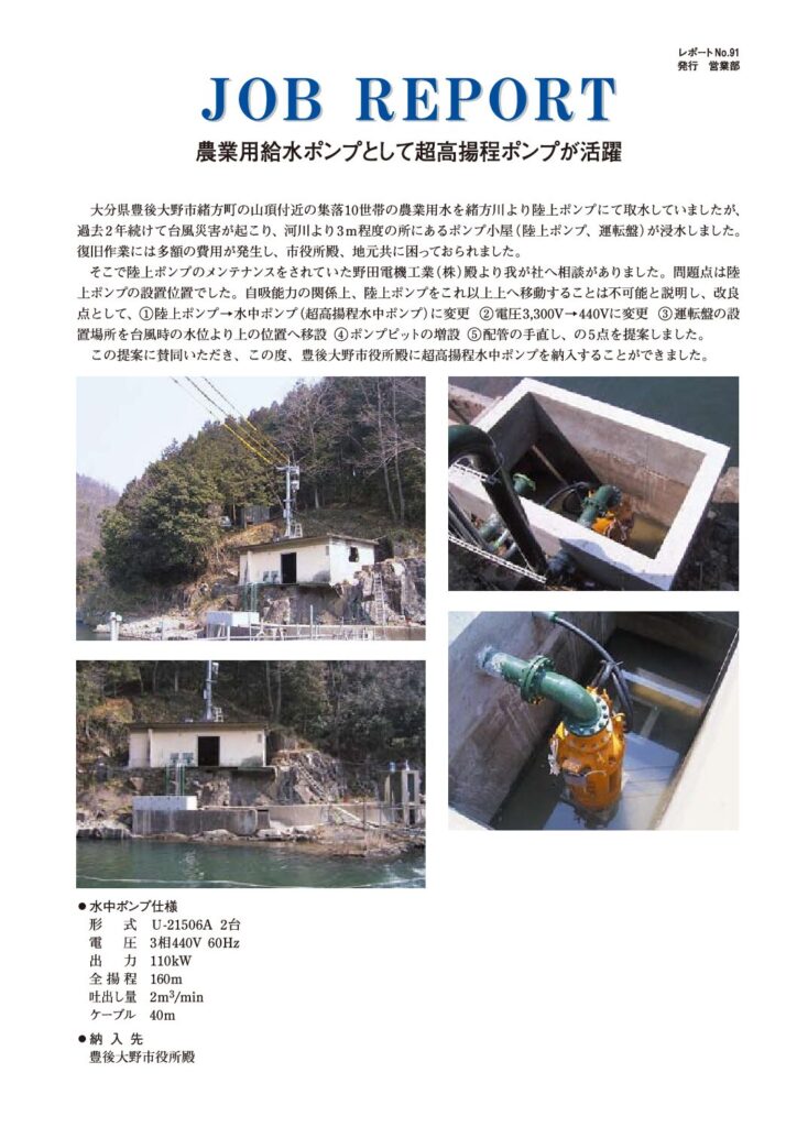 「ダム湖で活躍する」ブースター仕様ポンプ