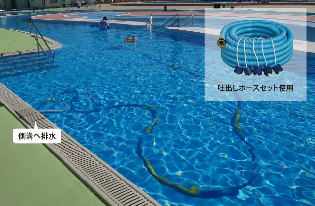 吐出しホースセットを使用すれば、側溝への排水も可能です。