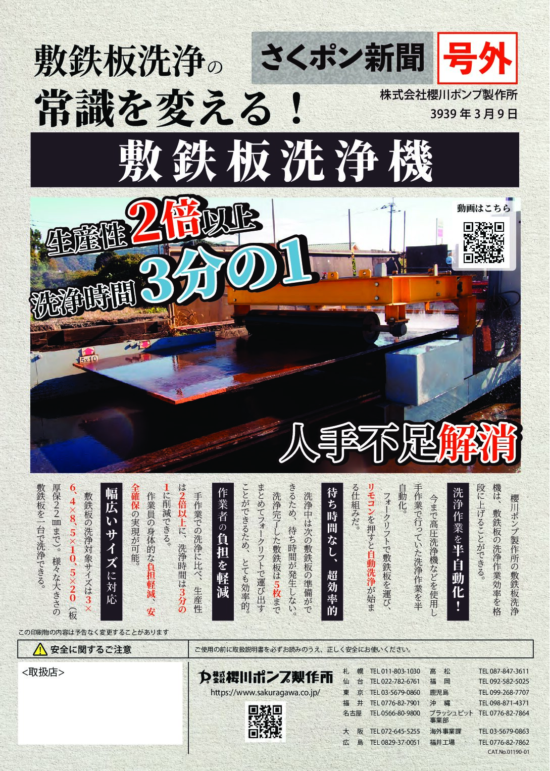 敷鉄板洗浄機を導入すると、1日100枚洗浄できるようになりました。