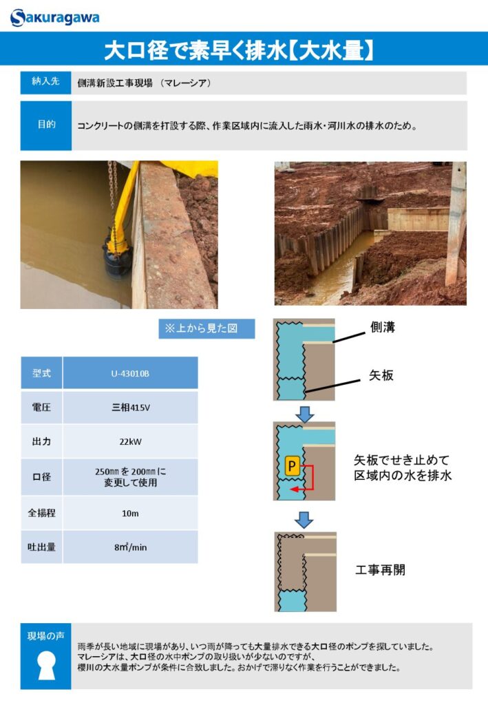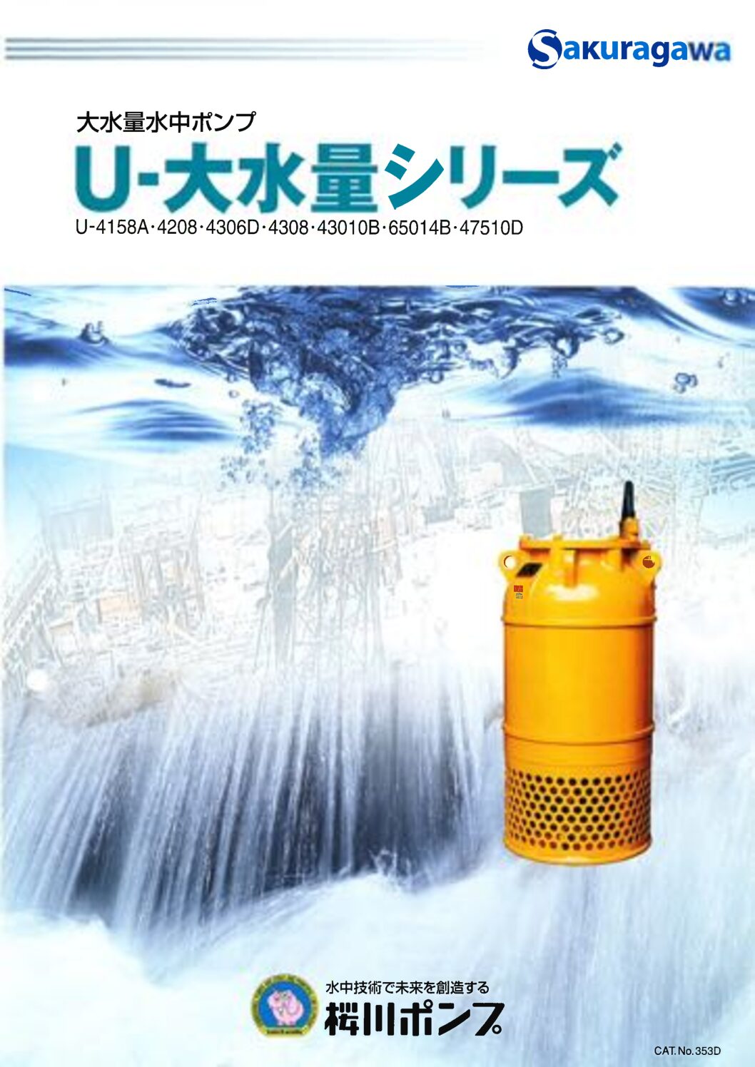 トルクの強い4極モータを採用(U-65014B:6極)。大水量ポンプとして最適の高性能機。高い効率を誇る使いやすい水中ポンプです。