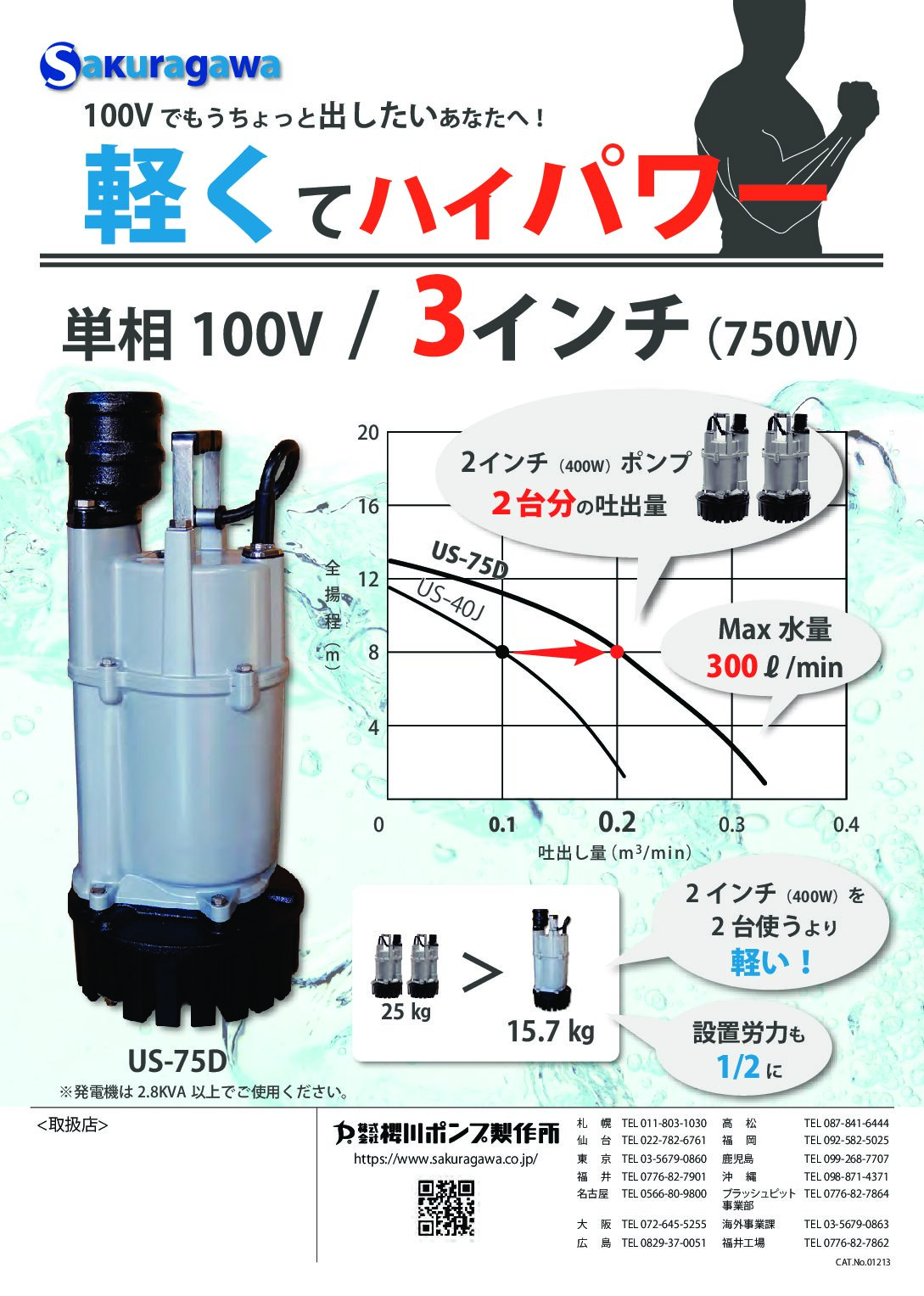 | US-75D(単相 100V) | 50Hz(PDF) | 60Hz(PDF) | CAD図面(ZIP) |