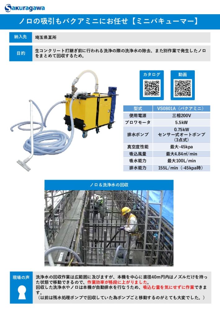 水、泥、砂、ヘドロなどあらゆるものを強力に吸引します。